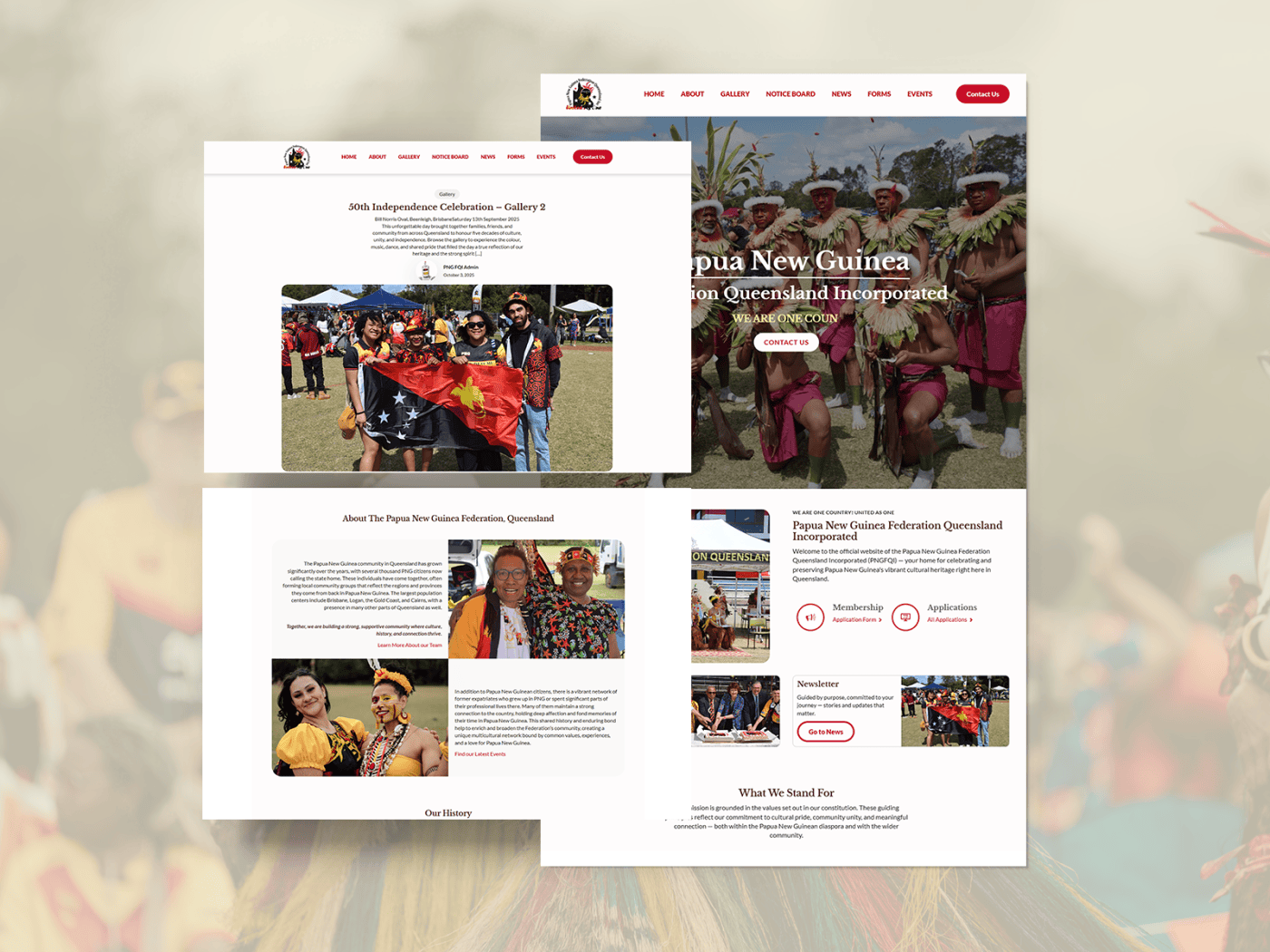 A vibrant digital home for the Papua New Guinea Federation Queensland Incorporated (PNGFQI), celebrating culture, connecting members, and modernising community communication across Queensland.